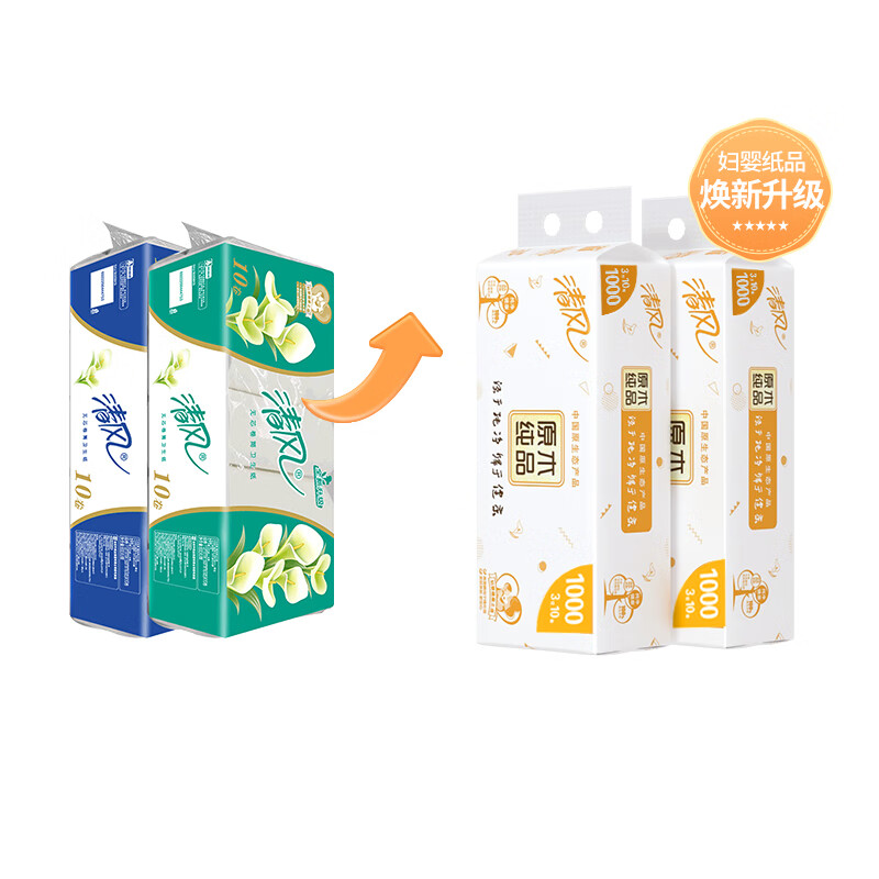 清风原木纯品金装抽纸3层130抽面巾纸8提48包纸抽整箱