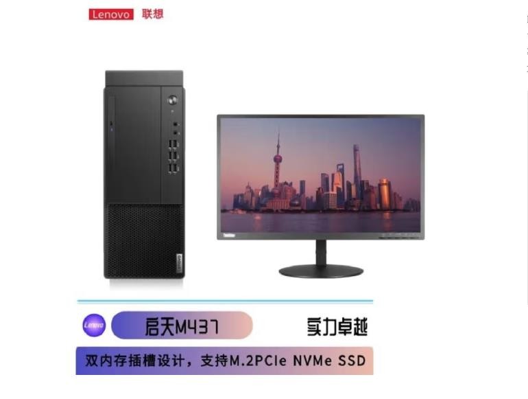 联想(Lenovo)启天M437办公商用台式机 I5-10500/8G运行内存/1T机械+128G固态/集成显卡/21.5吋显示器