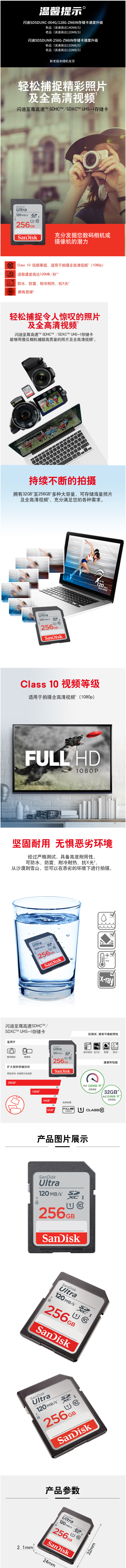 闪迪SanDisk存储卡 SD卡相机sd内存卡微单反存储卡Class10 全高清拍摄相机卡 256G SD卡高速读取120MB/S