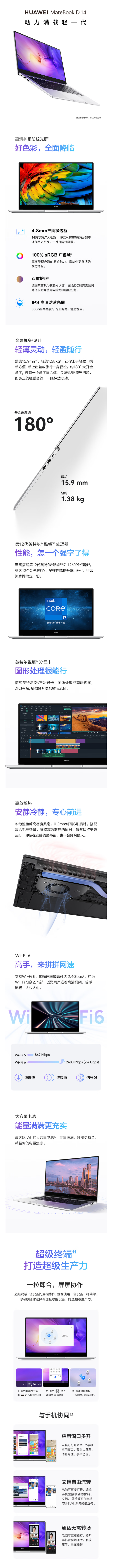 华为笔记本电脑MateBook D 14NbDE-WFH9(i5-1155G7 16G 512G 皓月银 Win11)