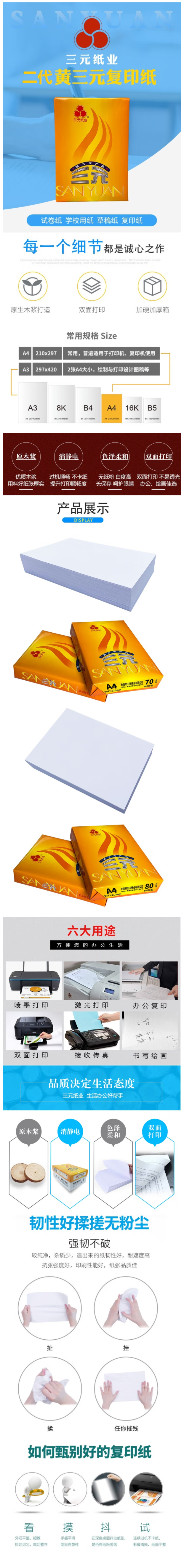 三元 多功能复印纸70g8K 打印纸 草稿纸 档案纸 练习纸 多规格系列 500页一包 70g8K 5包/箱