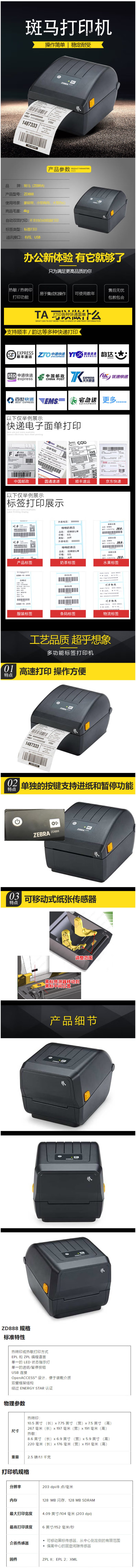 斑马(ZEBRA)GK888t条码打印机不干胶标签 热敏快递电子面单多功能打印 升级款ZD888T 黑色(不含网卡)