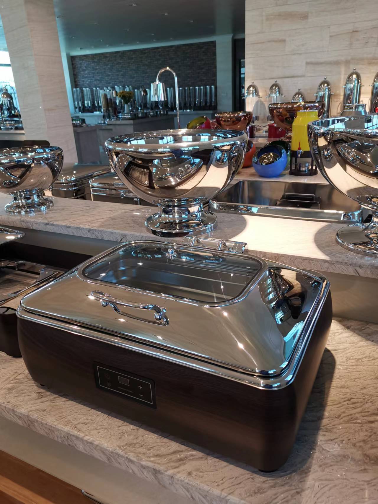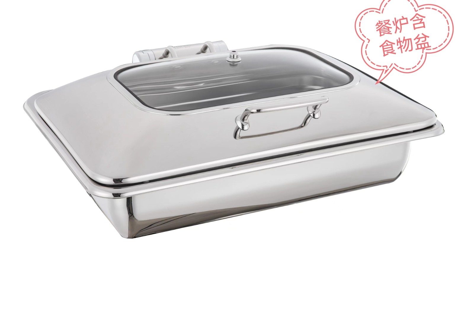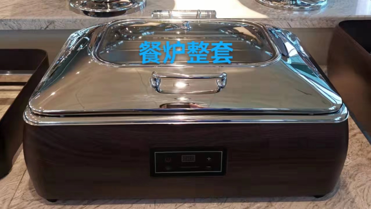 宇辉YUFEH 长方型阻尼缓冲式配玻璃盖 E-1011SL高级电餐炉不锈钢 自助炉 酒店 保温 早餐炉 布菲炉可配GN1/1食物盆, 9升配1000W电磁炉 炉架:E-1011F