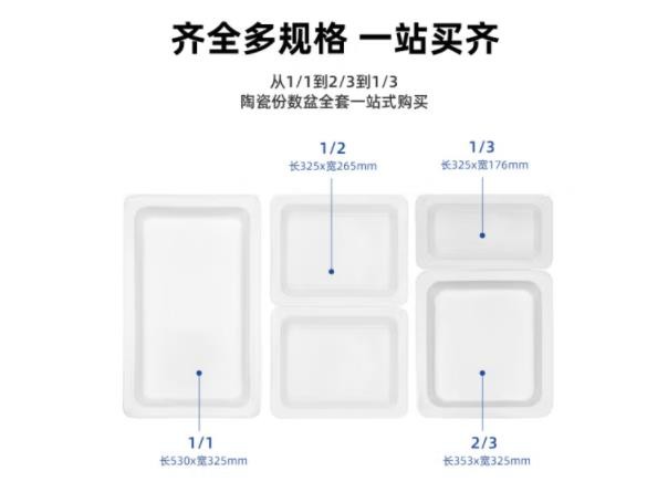 新款GN1/2 陶瓷盘,4L, 6.5cm/H 自助餐份数盆正方形陶瓷盆食物盆 份数盆 分数盘盛菜盆