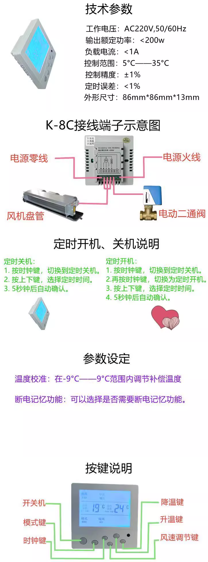 中央空调温控器温度控制器风机盘管液晶三速控温开关