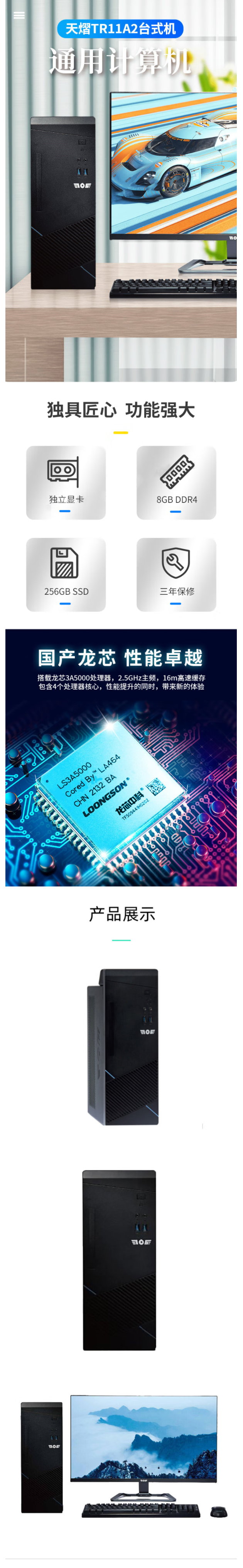 天熠TR11A2国产台式计算机 龙芯3A5000/8G/256G//23.8吋/统信系统/金山WPS/数科OFD/奇安信杀毒软件/三年质保/(含集成)/定制款