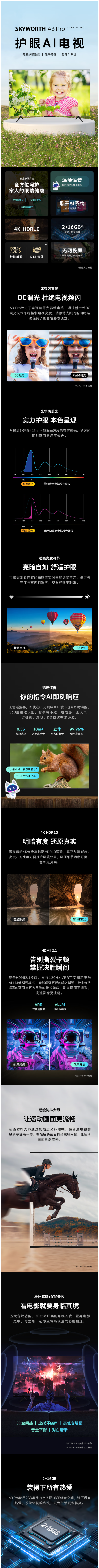 创维电视 65英寸护眼AI电视65A3 Pro 4K超高清