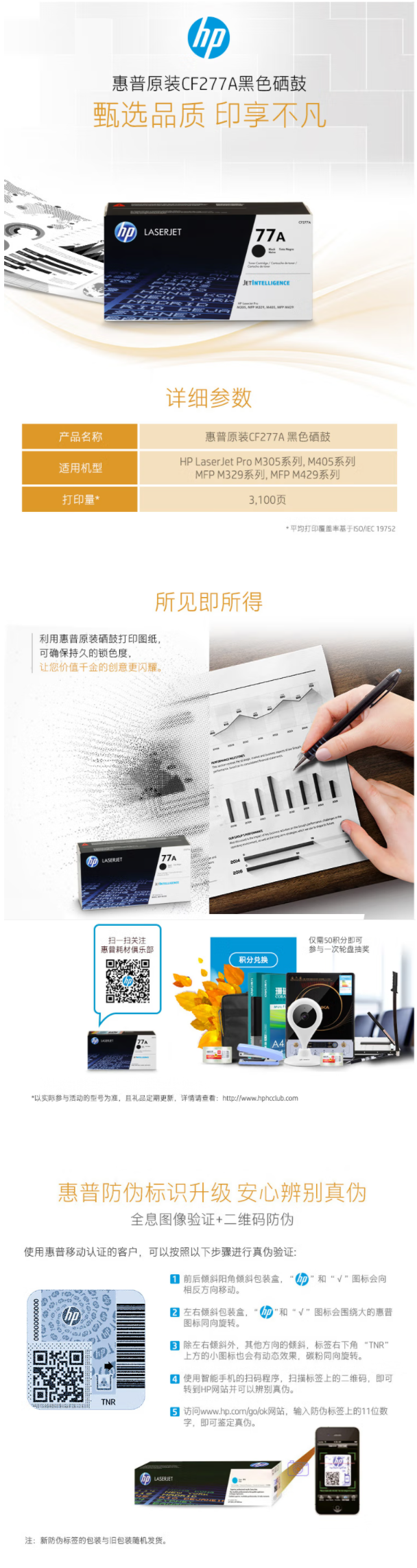 惠普(HP)CF277A 77A 黑色硒鼓(适用M305 M329 M405 M429 系列)约3100页