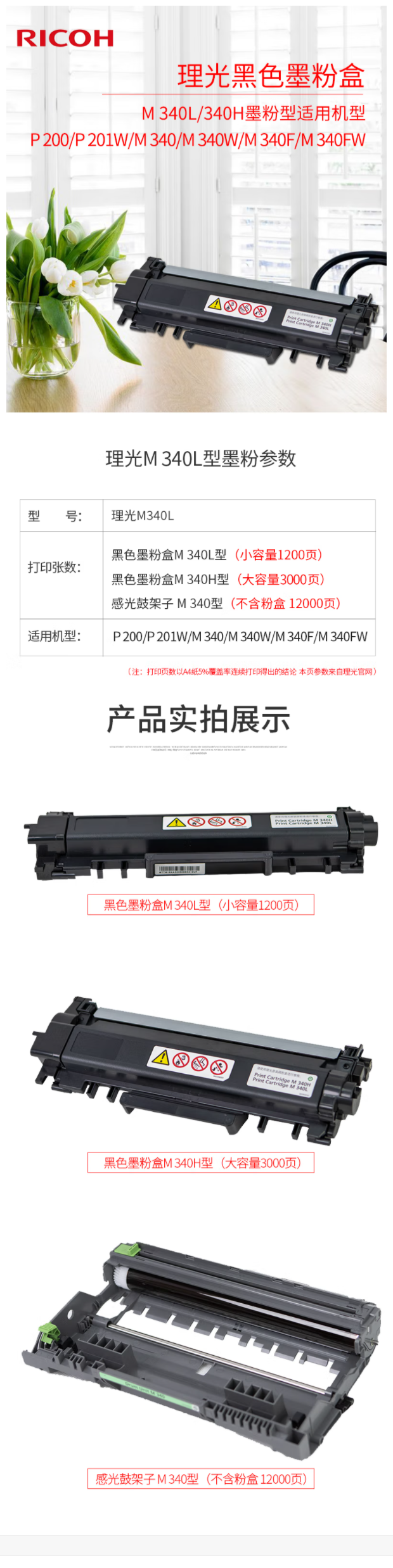 理光M 340H墨粉盒粉仓、适 P 200/P 201W/M 340W 黑色墨粉盒M 340H型(大容量3000页)