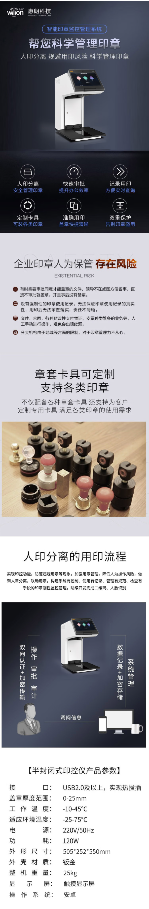 惠朗(huilang)HL-W730K印控仪自动盖章机 智能印章监控管理 单机版