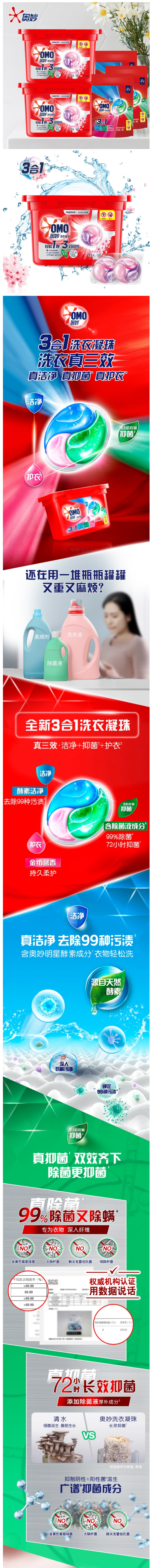 奥妙三合一洗衣凝珠18+4颗/盒洁净抑菌护衣真三效 淡雅樱花香型