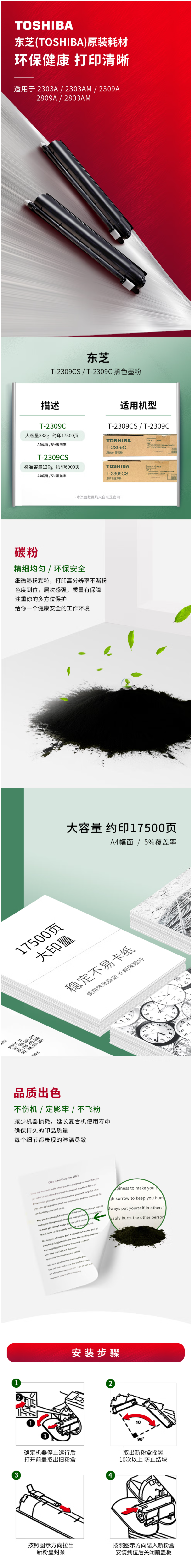 东芝(TOSHIBA)T-2309C原装硒鼓黑色高容墨粉(适用e-STUDIO 2303A 2303AM 2803AM 2809A 2309A)大容量