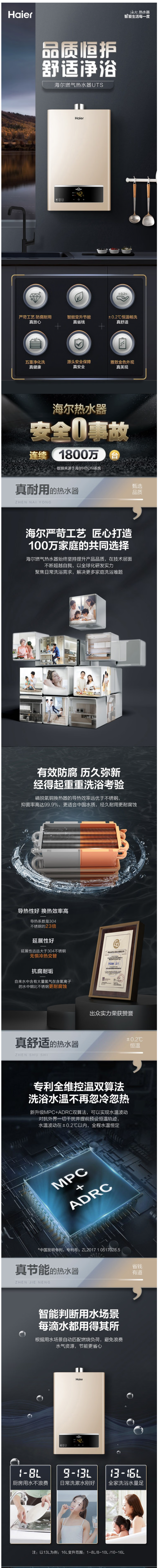 海尔(haier)燃气热水器变频家用天然气恒温智能防冻强排即热式热水器 13升变频水气双调JSQ25-13ZM3MSU1