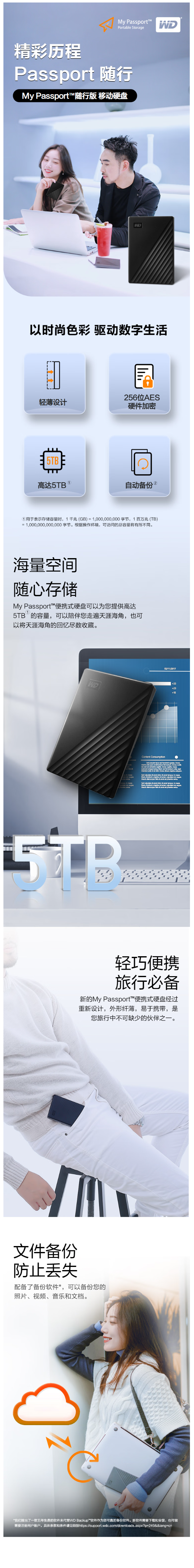 西部数据(WD) 1TB 移动硬盘 USB3.0 My Passport随行版 2.5英寸 黑 机械外接硬盘 便携存储 自动备份 兼容Mac