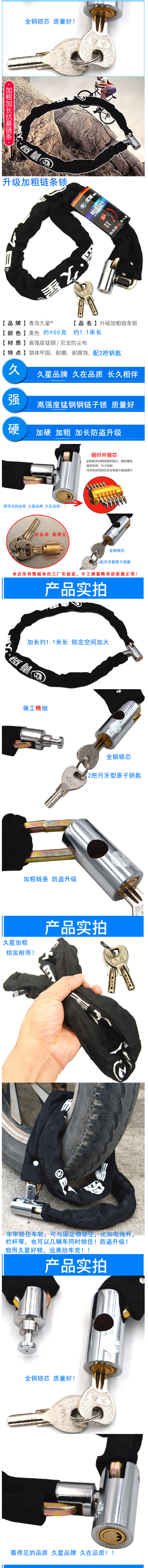 久星抗剪电动自行车锁摩托车防盗锁链子锁加长1.1米