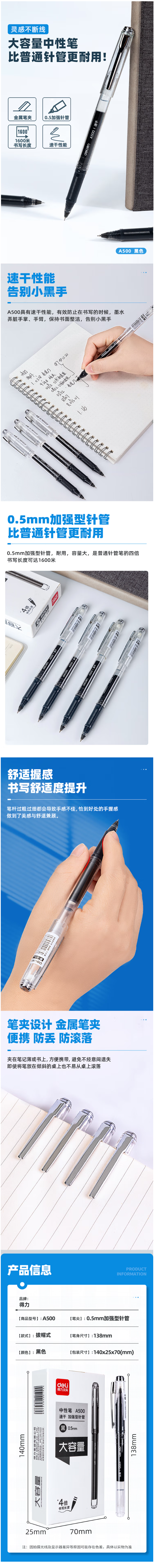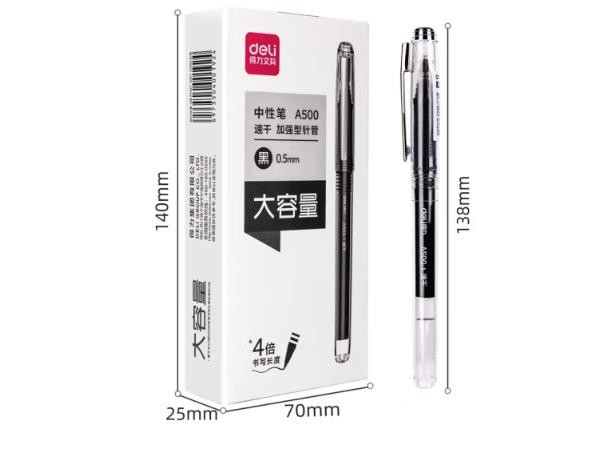 得力(deli)大容量中性笔无印风签字笔 学生考试笔 ins冷淡风 0.5mmST头加强针管 12支/盒