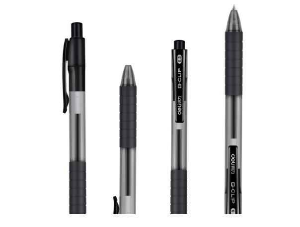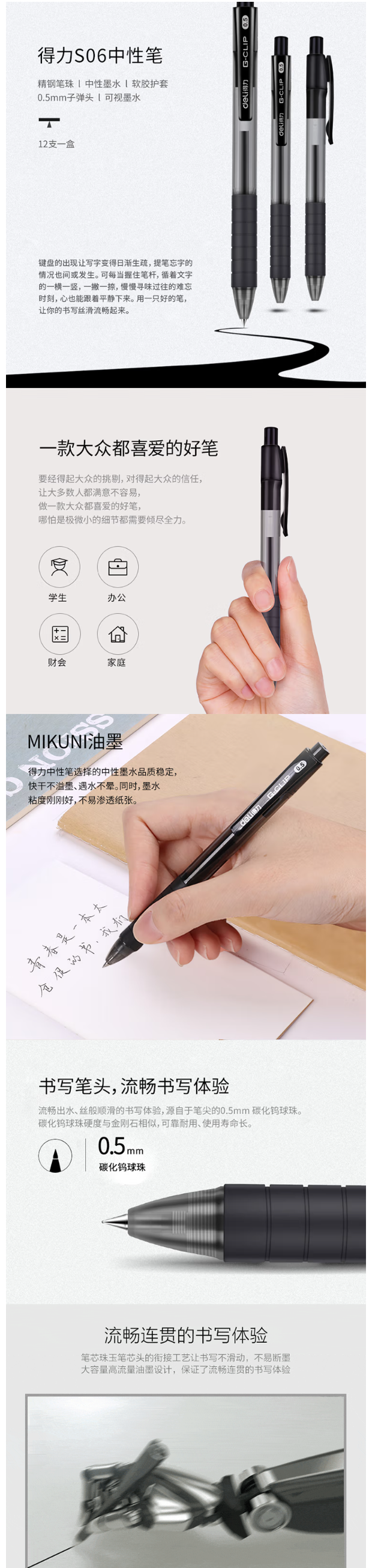 得力(deli)中性笔签字笔 0.5mm子弹头水笔按动笔 办公用品 黑色 12支/盒S06
