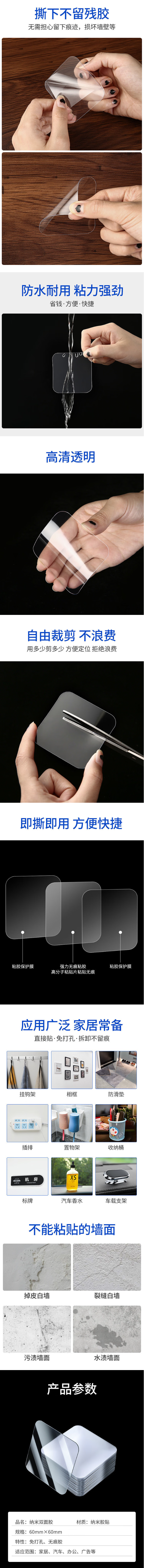 壹居长宁双面胶高粘度固定纳米贴片强力粘墙万能无痕贴 50片装(6*6cm)