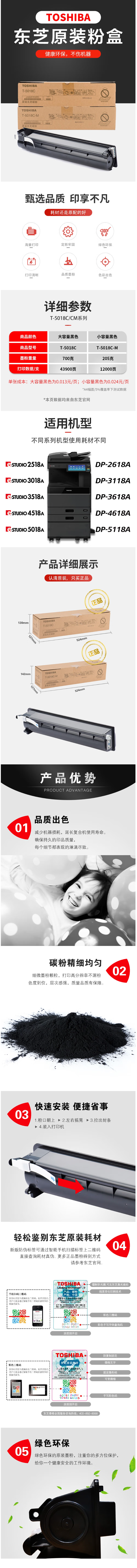 东芝T-5018C原装粉盒 墨粉 碳粉 适用2518A/3018A/3518A/2618A复印机墨盒 T-5018C大容量(700克/43900页)
