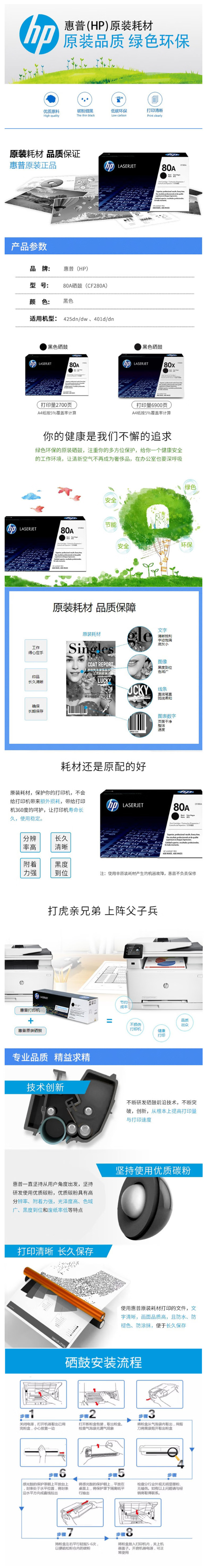 惠普(HP)CF280A/80a原装黑色硒鼓 适用hp M401A/M401N/M401DN/M425DN/M425DW打印机硒鼓