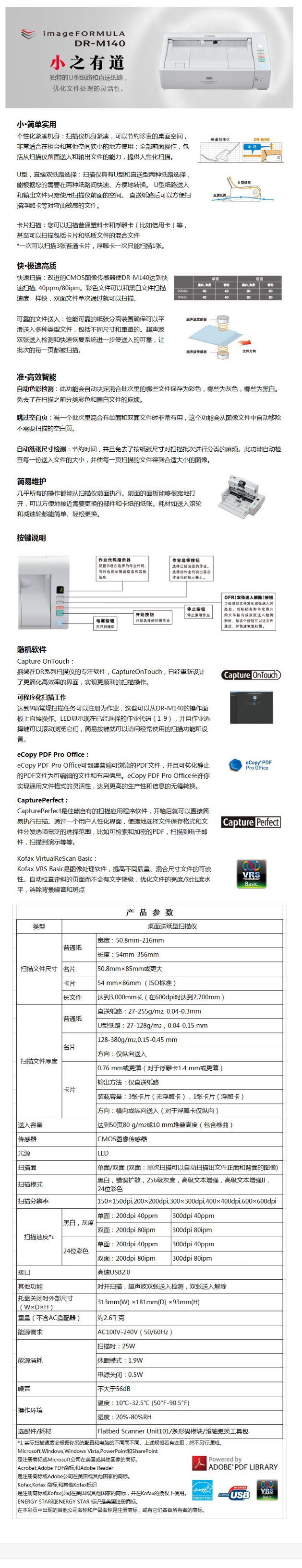 佳能(Canon)DR-M140彩色A4扫描仪 专业高速文件扫描仪