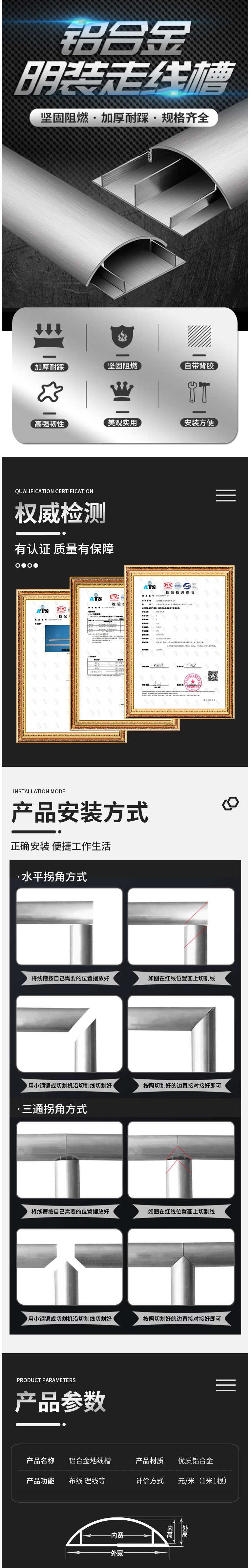 鸣固 铝合金线槽板 明装耐踩半圆压线走线过线扣线槽弧形穿线板电线布线槽地线槽 4号两根装