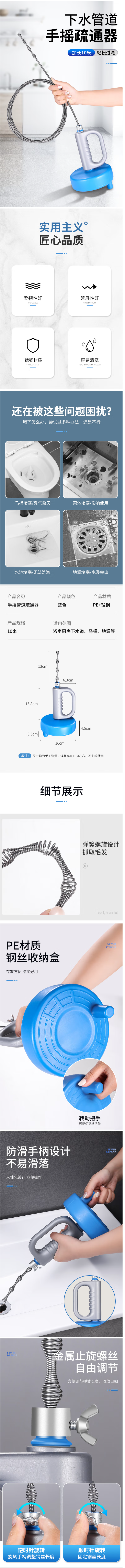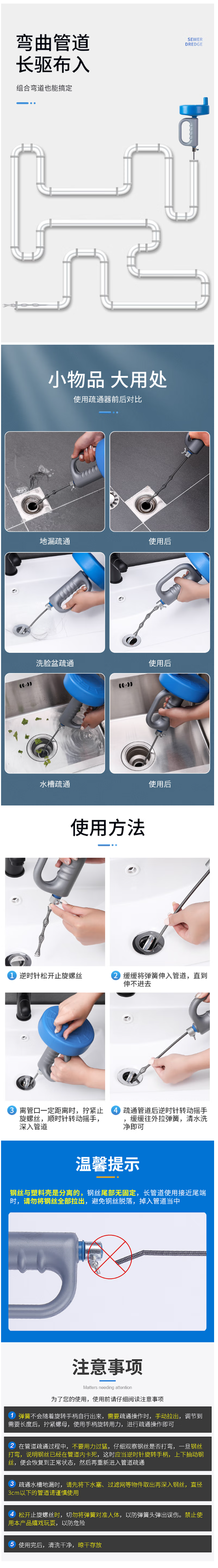 登比通下水道疏通神器管道疏通器通马桶水管地漏厕所堵塞疏通机厨房家用手摇工具长夹子取物夹拾取器皮搋子