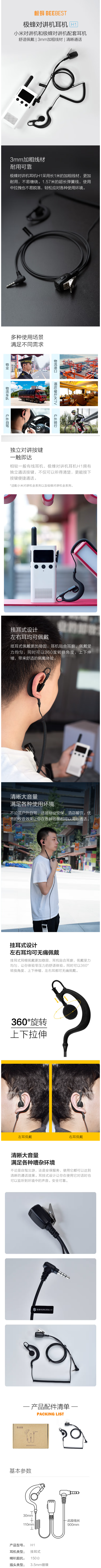 极蜂BeeBest H1 对讲机耳机适配小米对讲机手机耳机耳挂式标准3.5MM接口对讲机耳机