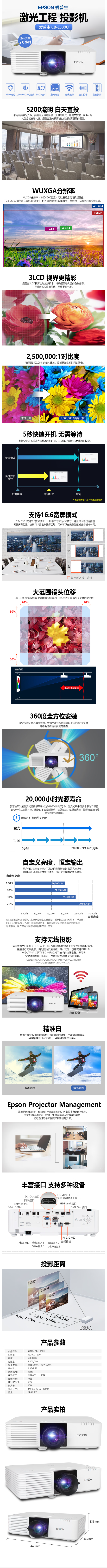 9套爱普生(EPSON)激光投影仪CB-L530U+配套支架+150英寸电动幕布+安装+配套配件