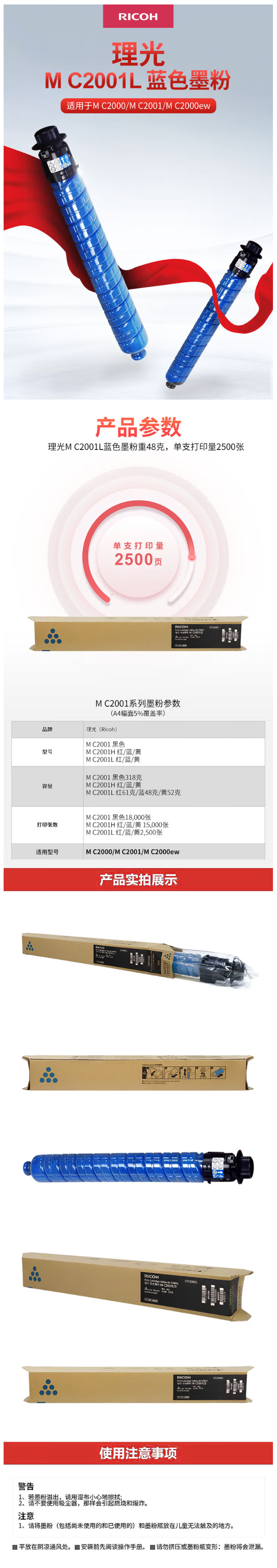 理光(Ricoh)MC2001型原装粉盒用于MC2001/MC2000ew/MC2000彩色复印机 2001L彩色低容青色(蓝色) 原装墨粉