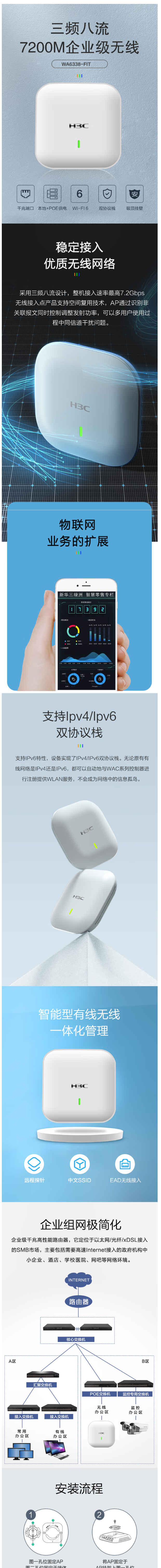 新华三(H3C)WiFi6无线AP 7200M三频八流千兆室内吸顶企业5G高密接入点 带机100-150/物联网能力 WA6338