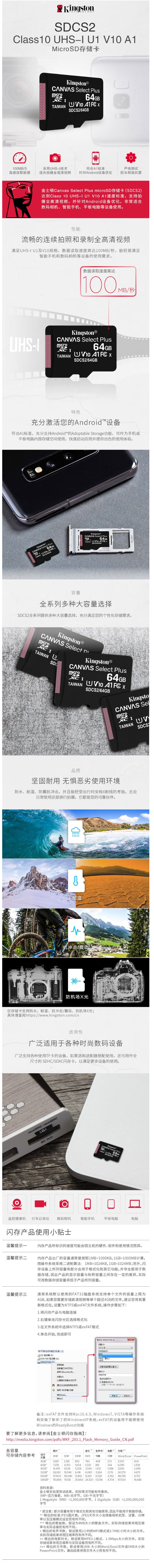 金士顿(Kingston)内存卡64GB tf小卡 MicroSD存储卡 手机行车记录仪内存卡 存储卡