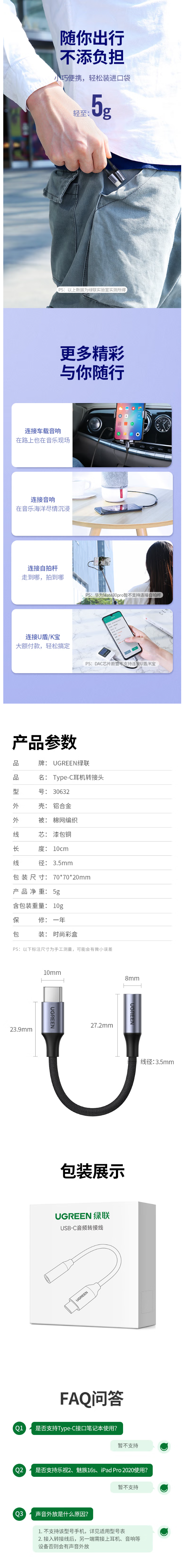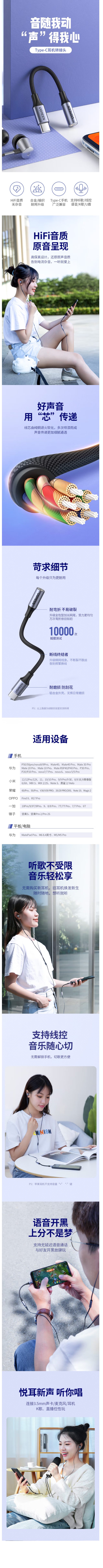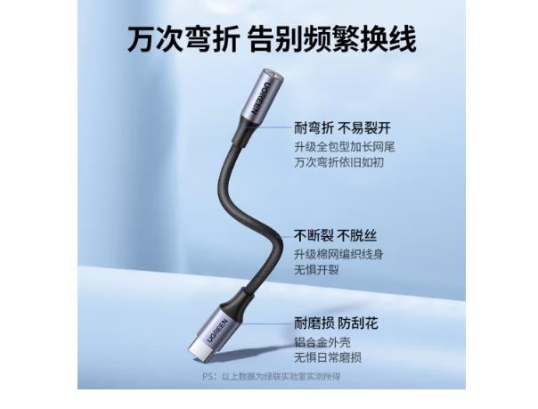 绿联 Type-C耳机转接头 3.5mm耳机音频线 USB-C耳机转换器 通用小米12/11/华为Mate40Pro/P50安卓手机