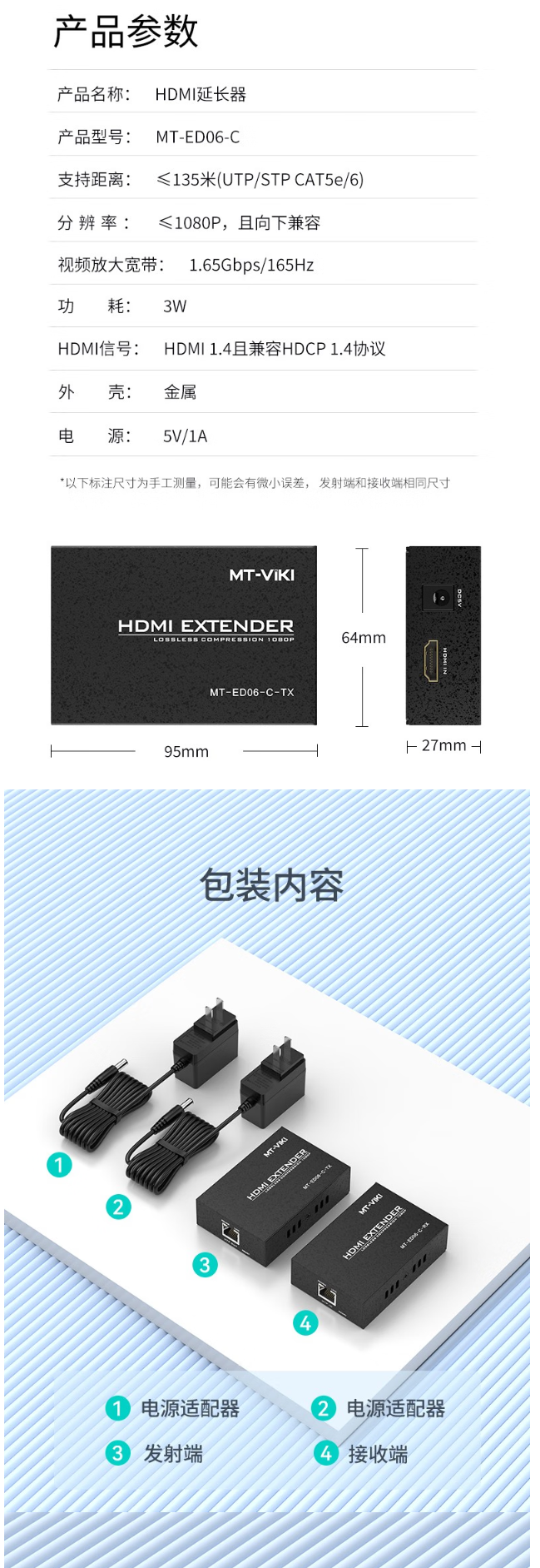 迈拓维矩 hdmi延长器KVM延长器 RJ45网线转HDMI网传信号放大器高清usb网络传输器 135米网线HDMI网传一对(MT-ED06-C)