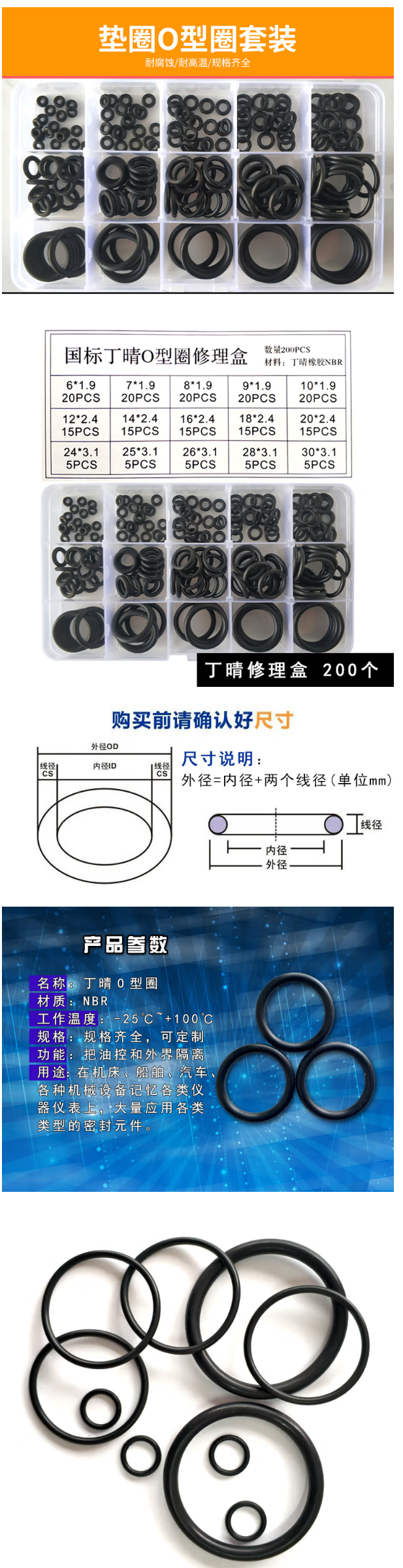 海斯迪克 gnjz-90 防水密封胶圈 氟胶盒装耐油NBR丁晴橡胶套装 耐高温 垫圈 丁晴O型圈国标200个