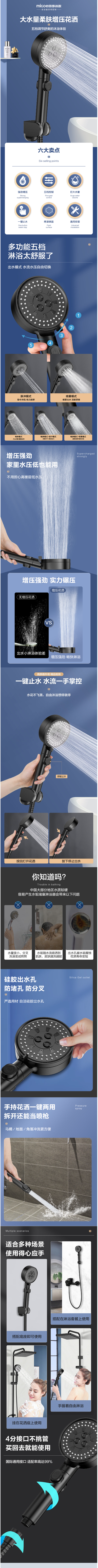 四季沐歌(MICOE)黑色增压淋浴花洒喷头套装 淋浴喷头淋浴头花洒套装手持花洒全套