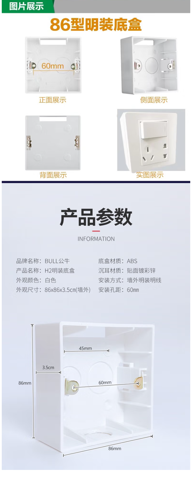 公牛(BULL)明装底盒H2 86型 10A 220V