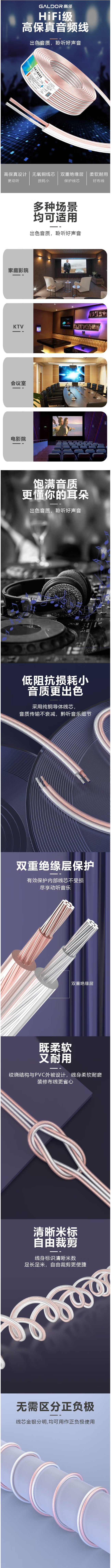 高多(GALDOR) 音频线音响金银喇叭线 功放连接线专业级工程布线发烧级会议音箱线系列高保真音效纯 200芯100 米【GD-A200】