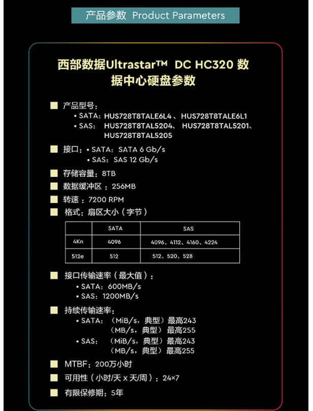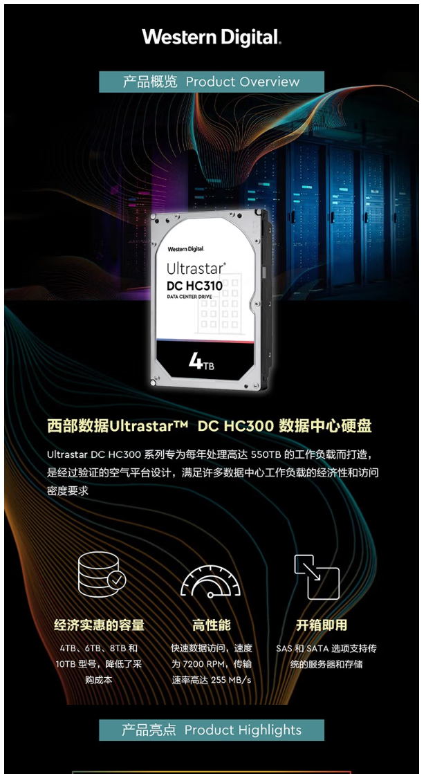 西部数据(WD) 企业级NAS网络存储服务器机械硬盘 CMR垂直式 SATA3.0 HC320 8TB HUS728T8TALE6L4