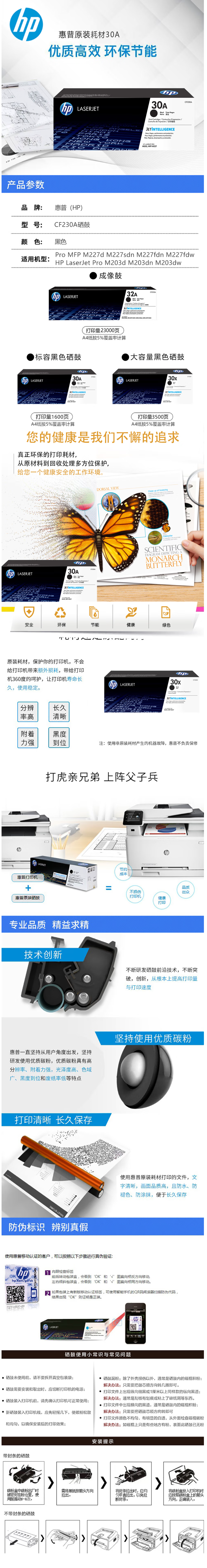 惠普(HP) CF230a 硒鼓m227fdw/m227sdn/m227fdnd/m203dw/dn 粉盒墨盒cf230a打印机墨粉盒1600页