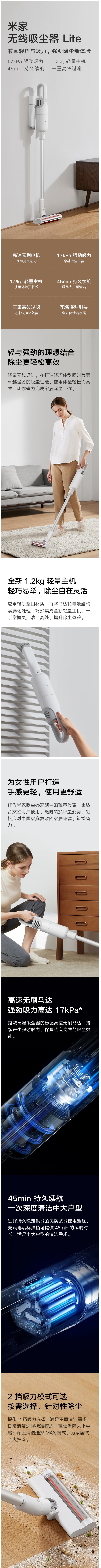 小米米家吸尘器无线手持Lite 轻量化设计 2档吸力 45分钟续航 壁挂式收纳