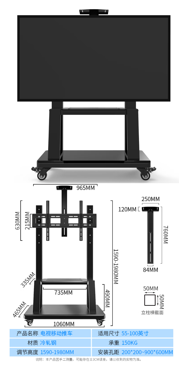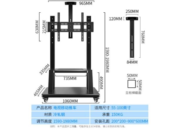 电视移动支架55-100英寸电视大屏落地挂架一体机电视架子显示屏电视推车小米海信创维华为等视频会议架(含安装)