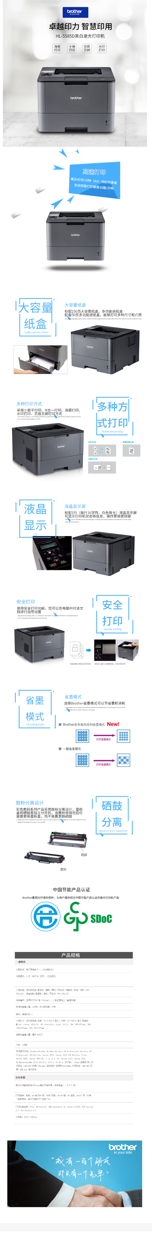 兄弟(brother)HL-5585D 黑白激光打印机 高速打印 多种打印方式 大容量纸盒