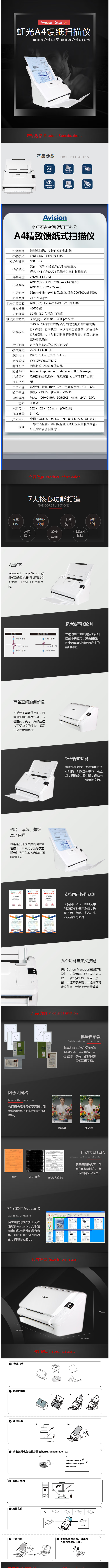 虹光(Avision)双面彩色馈纸A4扫描仪每分钟32页64面 支持国产操作系统 AF331