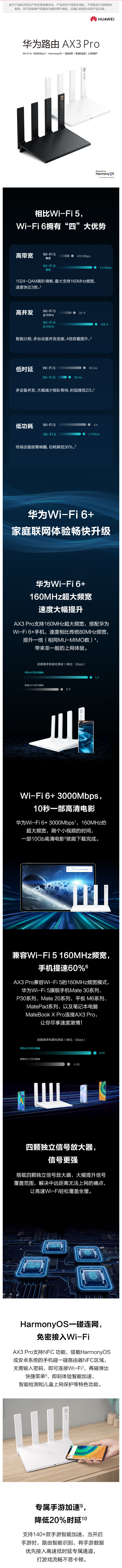 华为(HUAWEI)路由器AX3 Pro 千兆路由器 无线路由器 wifi6/智能分频/无线家用穿墙/AX3000/高速路由