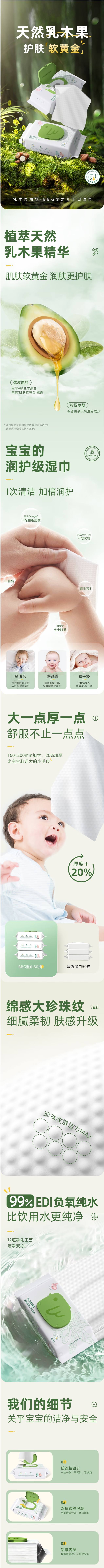 BBG乳木果婴幼儿湿纸巾50抽加厚深层护肤手口湿巾 50抽*12包