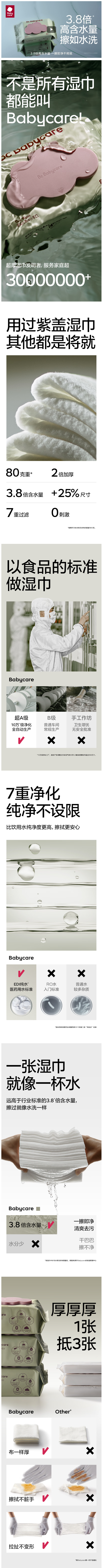 babycare婴儿手口湿巾新生儿湿纸巾宝宝带盖大包装 6480紫盖湿巾 80抽-8包