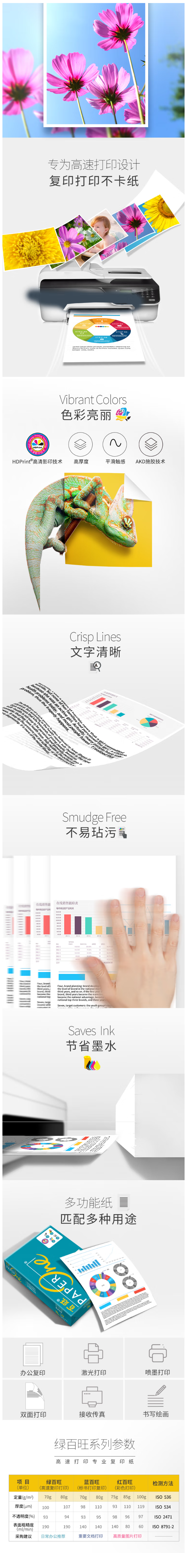 亚太森博 绿百旺 复印纸 70G A4 500张/包5包/箱 (2500张)
