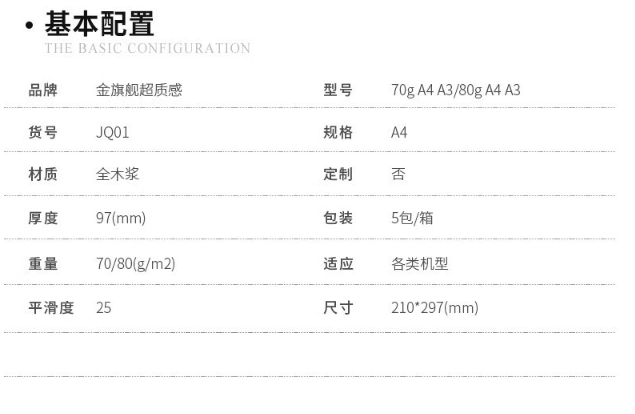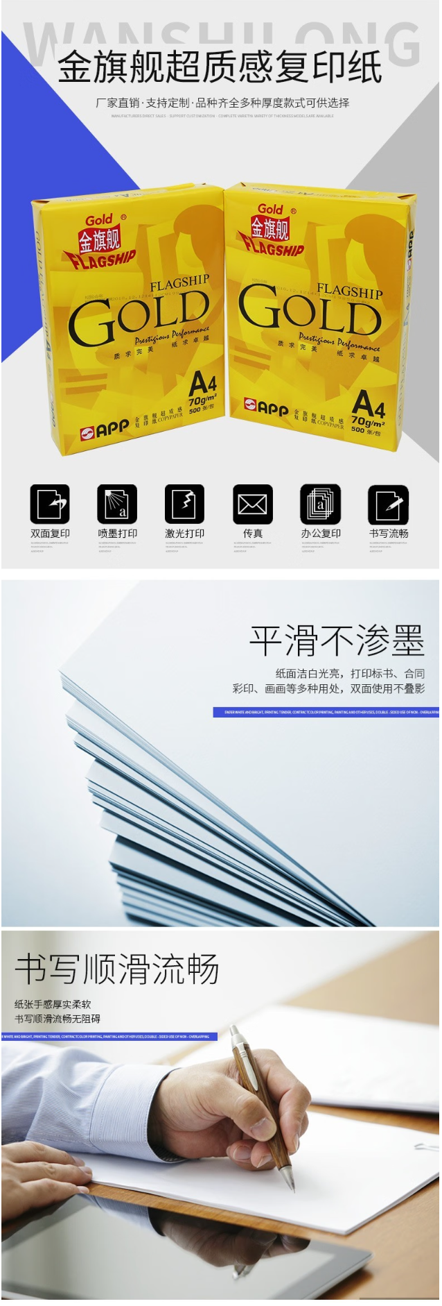 金旗舰(FLAGSHIP) 复印纸70克A4打印纸超质感办公白纸500张/包 5包/箱