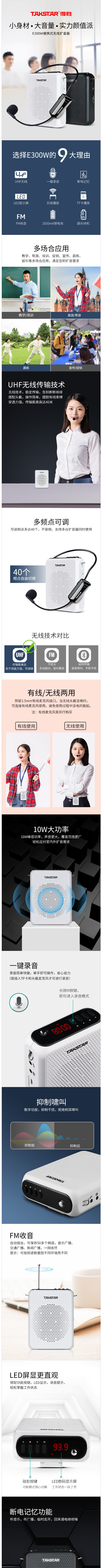 得胜(TAKSTAR)E300W无线便携式扩音器 白色